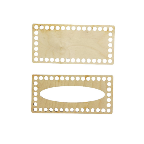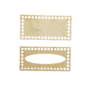Baza pod szydełkowy chustecznik w kształcie prostokąta ułatwi uzyskanie foremnego wzoru. Zestaw zawiera wieko z otworem i podstawę.