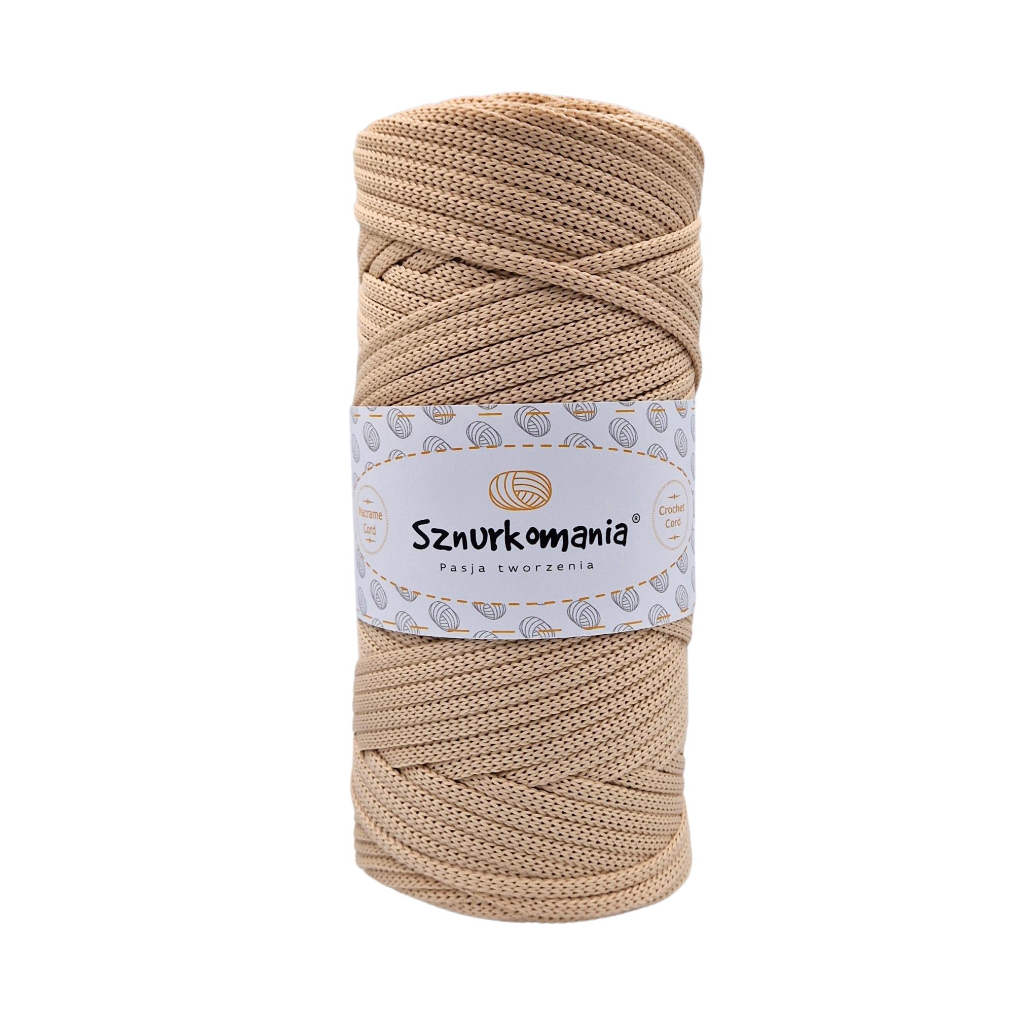 BEŻOWY - SZNUREK POLIESTROWY PŁASKI 4-5MM DŁ. 100M