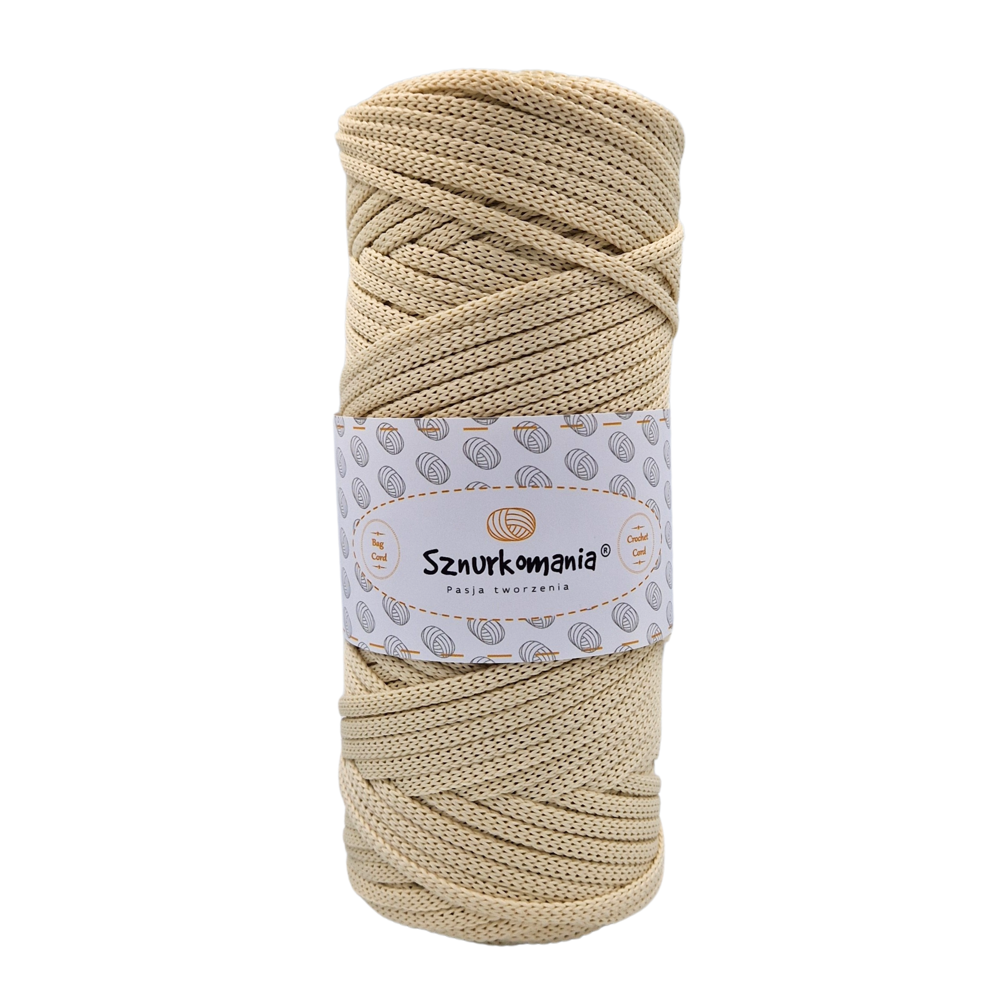 KREMOWY - SZNUREK POLIESTROWY PŁASKI 4-5MM DŁ. 100M