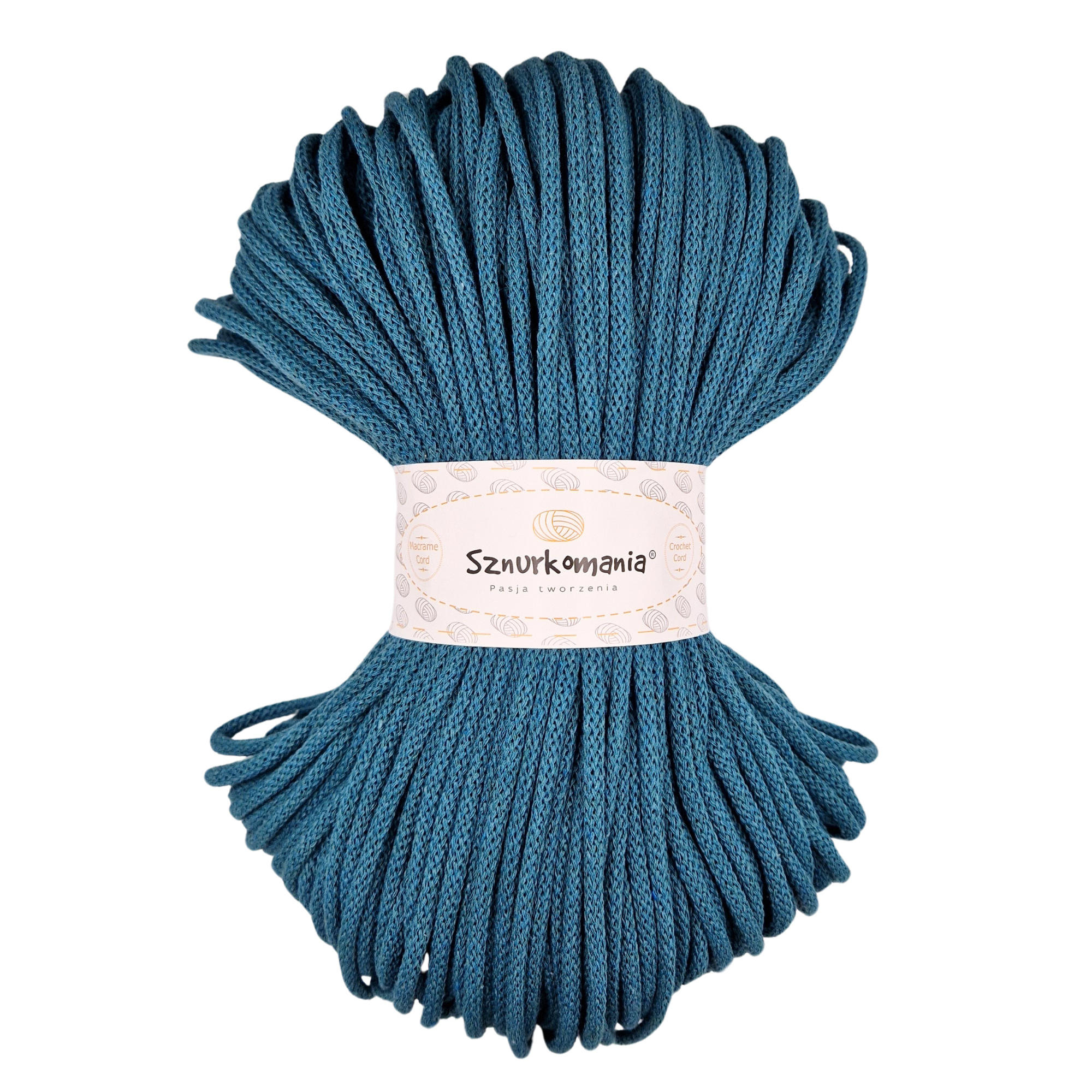- Sznurek posiada wypełnienie poliestrowe (tzw. rdzeń). Poliester ma niską pochłanialność wody, jest wytrzymały, sprężysty, ma dużą odporność na rozciąganie, dzięki czemu gotowe robótki zachowują swój kształt.